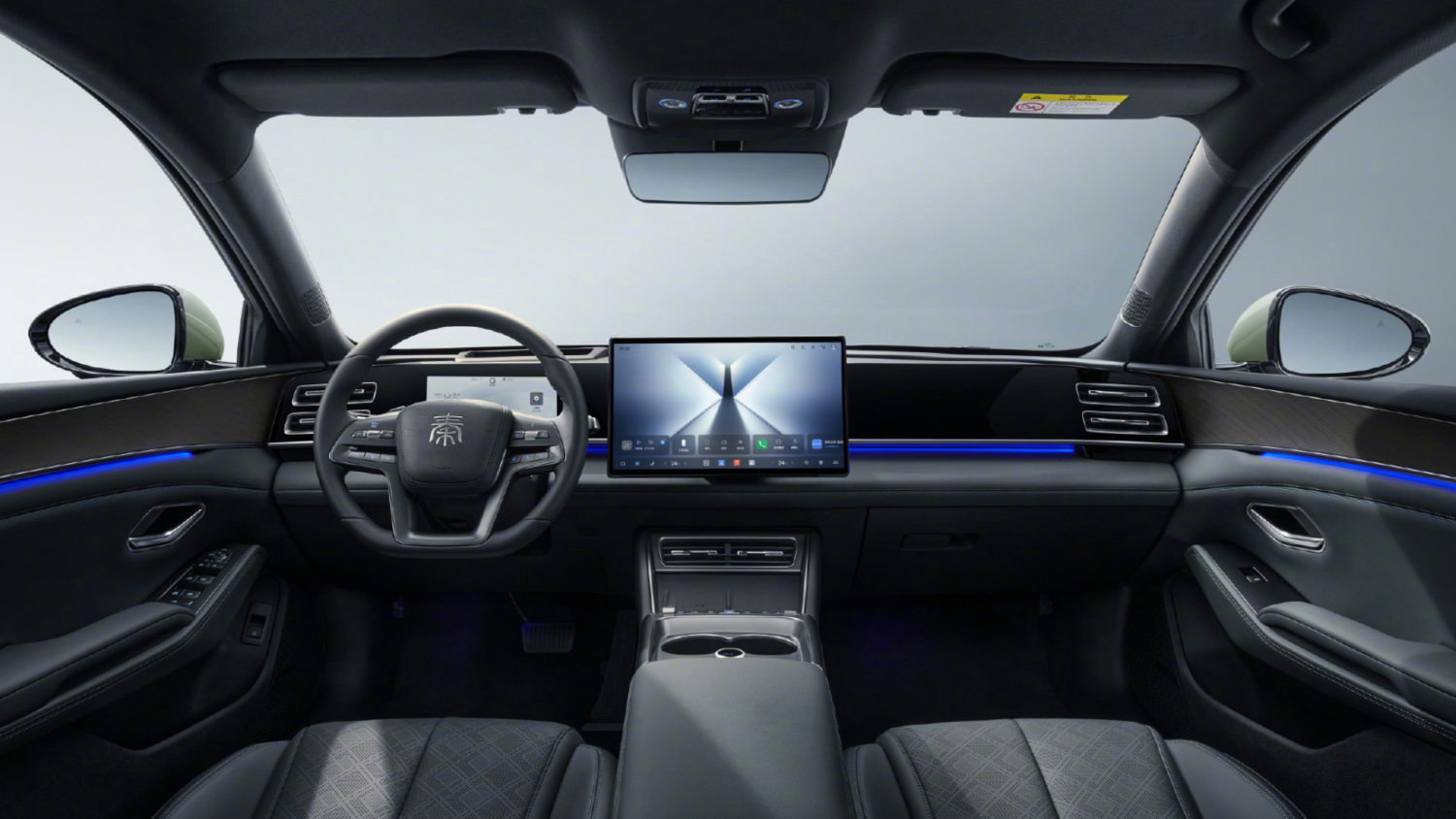 Базовая версия Qin L DM-i оснащается 8,8” цифровой «приборкой» и 12,8” сенсорным экраном. В топовой комплектации устанавливается 15,6” дисплей на платформе DiLink 100. В числе опций — проекционный дисплей и встроенный холодильник, а старшие исполнения дополнительно получают систему помощи водителю DiPilot 100.