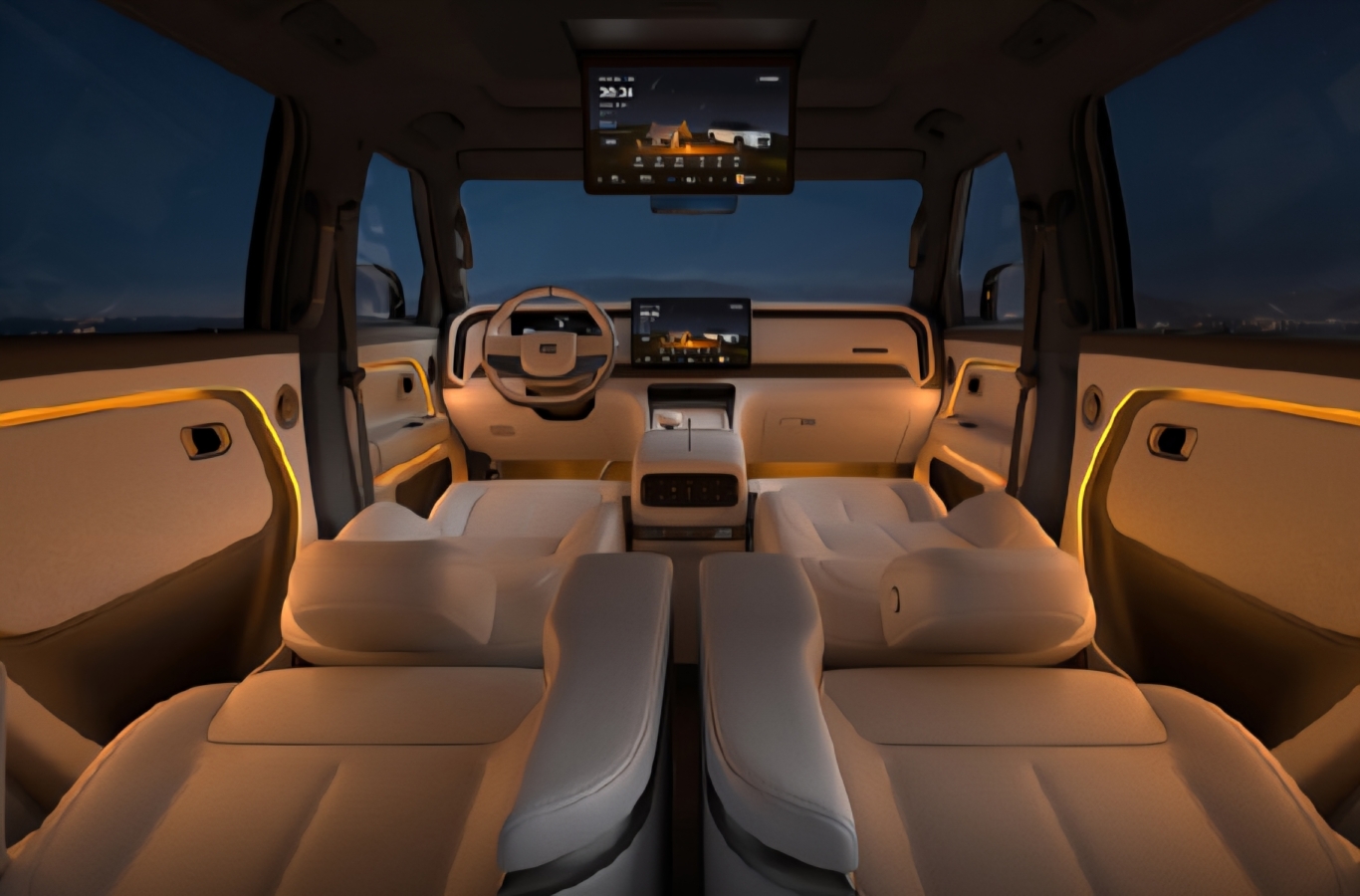Сиденья с отделкой кожей Nappa оснащены подогревом и вентиляцией. Базовую конфигурация включает восемь подушек безопасности, холодильная установка объемом 8,5 литра, аудиосистема с 24 динамиками и интеллектуальный голосовой ассистент на базе ИИ.