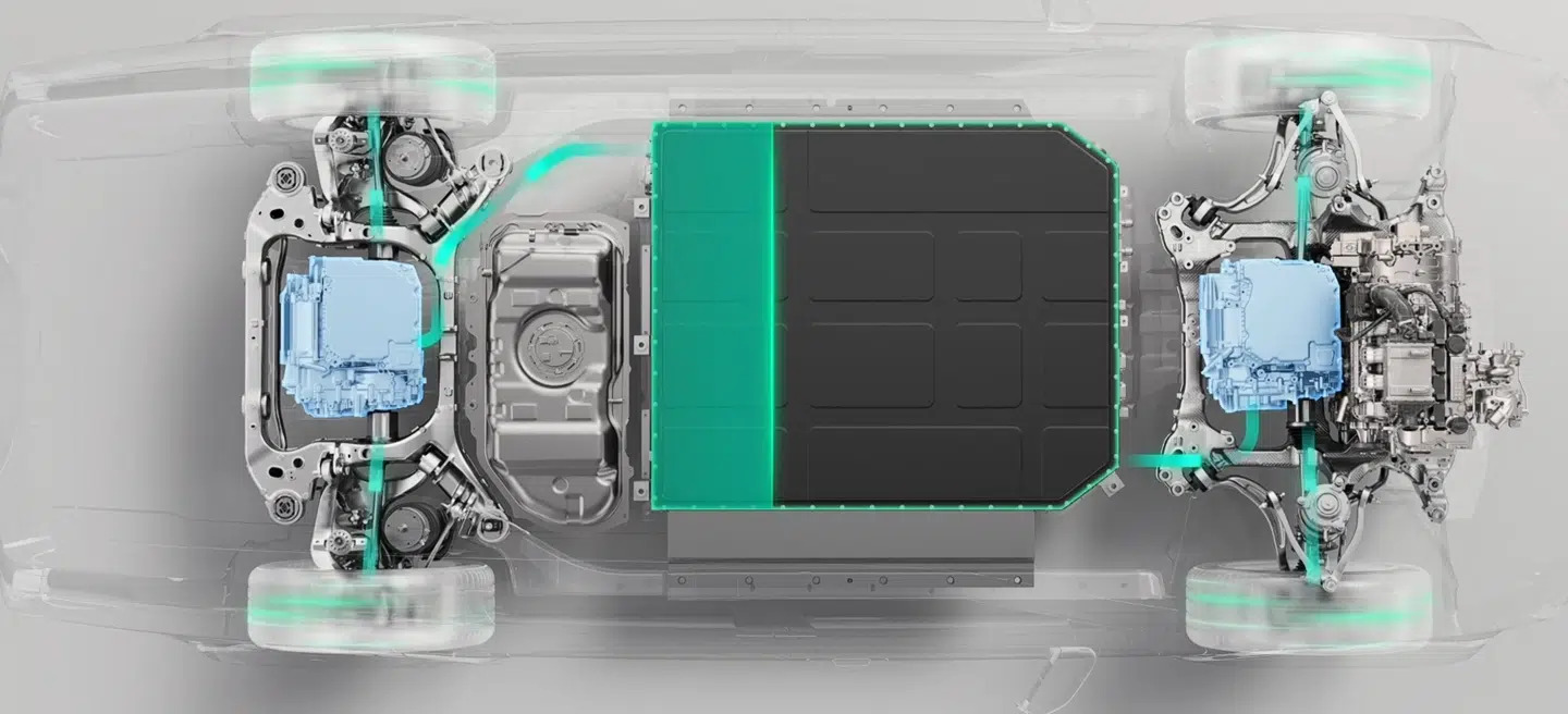 Силовая установка EREV построена вокруг 1,5 л турбированного мотора на 108 кВт (145 л.с.), работающего в роли генератора и связанного с одним либо двумя электромоторами. Энергия аккумулируется в тяговой АКБ CATL емкостью 44,5 кВт·ч с тройной литиевой химией. В электрическом режиме внедорожник способен проехать около 215 км, а суммарная дальность хода достигает 1405 км.