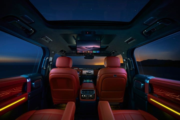 Салон G700 оформлен с размахом: за рулем расположен телескопический 35,4” 3K-дисплей, центральную консоль украшает 15,6” экран с разрешением 2.5K, а пассажирам второго ряда доступен 17,3” потолочный экран (в базовой версии отсутствует). В качестве опции предлагаются акустическая система Lexicon и спутниковая связь, что подчеркивает премиальный уровень модели.