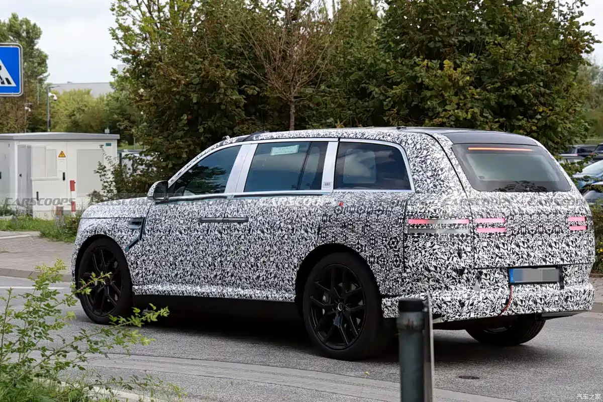 Даже под слоем маскировки заметно, что GV90 остается верен фирменному стилю бренда. В частности, обращает на себя внимание оформление боковых окон с хромированной окантовкой, подчеркивающей статус и премиальное позиционирование внедорожника. Также можно предположить наличие характерной для Genesis светотехники с двухполосными элементами, хотя их окончательная форма пока скрыта.