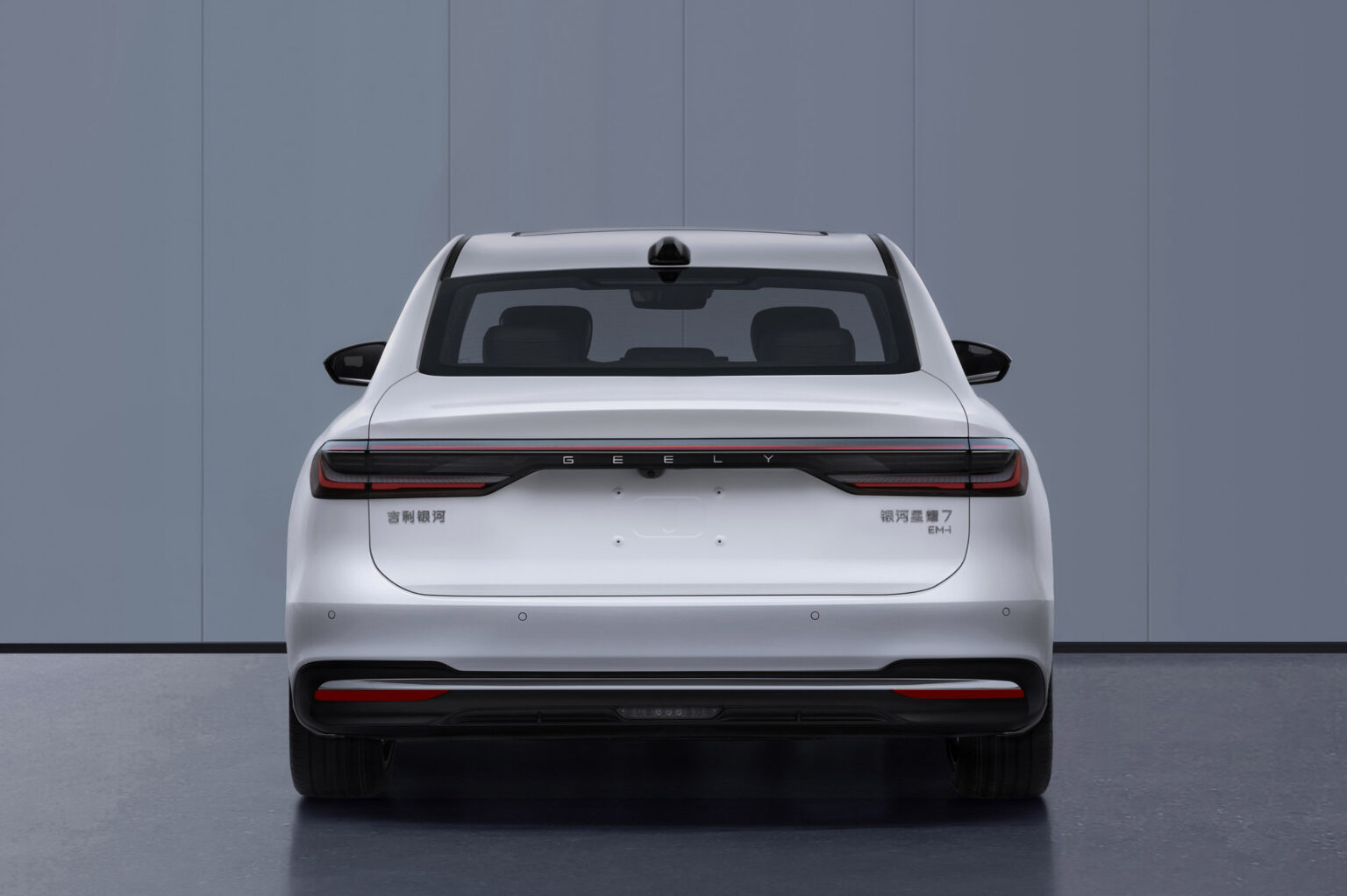 Судя по внешности, Starshine 7 ближе по духу к «шестёрке». В передней части выделяется крупная трапециевидная решётка радиатора с вертикальными хромированными ламелями — почти идентичная той, что украшает младшую модель. Профиль кузова отличает классическая форма дверных ручек, а заднюю часть венчают горизонтальные фонари, объединённые фирменной надписью GEELY.