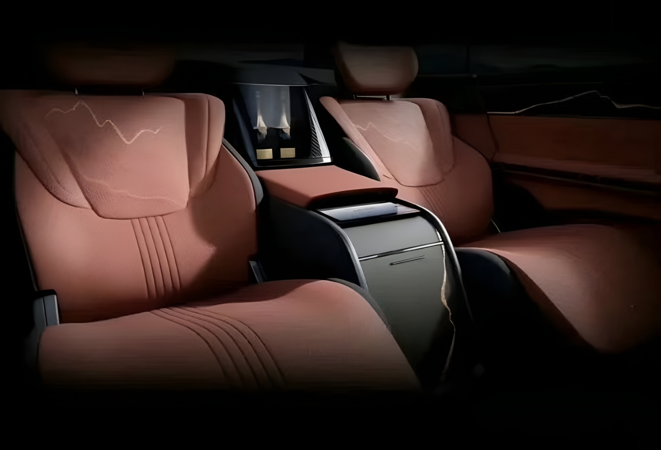 Интерьер вдохновлён тематикой Запретного города: тройной цифровой дисплей, трёхспицевый руль, комбинация экокожи, микрофибры и матового карбона. Второй ряд оснащён креслами «невесомость» с электрорегулировками, вентиляцией, подогревом и пульсирующим массажем.