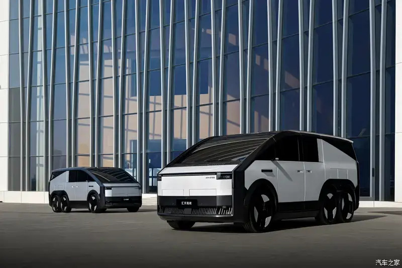 Экстерьер автомобиля был раскрыт ранее и ясно демонстрирует стремление XPeng объединить футуризм с функциональностью. Передняя оптика выполнена в стилистике нового XPeng P7, а сильно наклоненная передняя стойка кузова не только формирует динамичный силуэт, но и работает на снижение аэродинамического сопротивления. Конструкция машины нетривиальна даже по меркам сегмента: трехосное шасси с формулой 6×6 подчеркивает ее утилитарный и одновременно технологичный характер. Габариты внушительные — 5500 мм в длину, 2000 мм в ширину и 2000 мм в высоту.